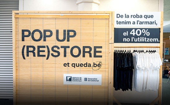 L’exposició Pop Up (Re)Store, de l’Agència de Residus de Catalunya, és un espai itinerant destinat íntegrament a la moda circular, una proposta que permet sensibilitzar la població sobre la importància de reutilitzar les peces de roba i els complements de vestir, apostant pel disseny i la moda sostenible.