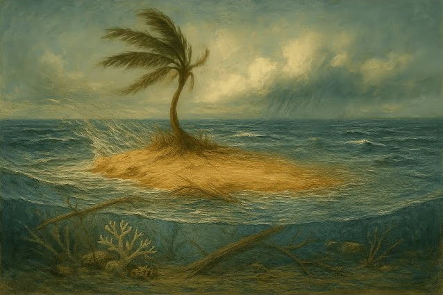 En un racó oblidat d’un oceà col·lapsat, tres éssers habiten una illa fràgil: Pròsper, un clown obsessionat pel control; Miranda, una veu que canta els records del mar; i Calibà, un cos insurgent que lluita per l’equilibri perdut.