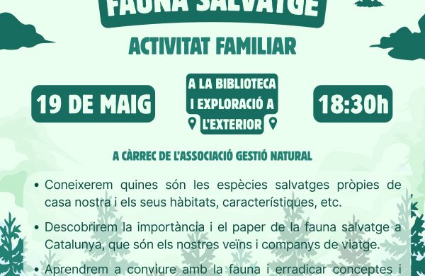 El dimarts 19 de maig de 2026 a la Biblioteca Pública de Cervià es durà a terme un taller dirigit a públic familiar per conèixer la fauna salvatge de l’entorn natural del municipi per mitjà dels rastres que trobem.
